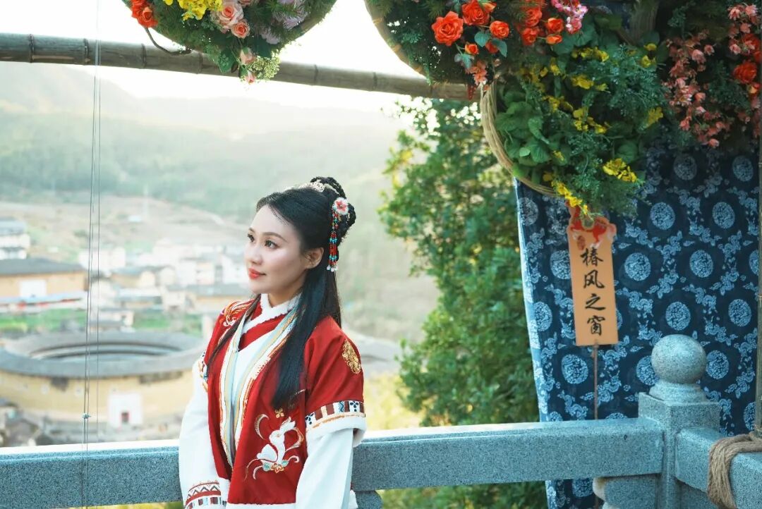 “椿风之窗”观景台更是俯瞰初溪的绝佳视角,将千年土楼群、春日田园与新春的喜庆氛围一并框入眼中,新年登高打卡,寓意步步高升,是永定土楼过大年的必打卡点位。